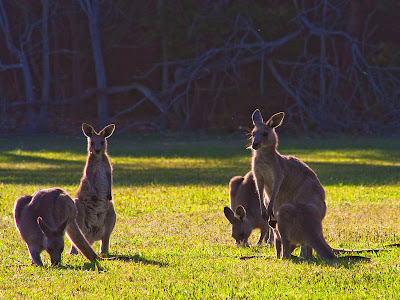 | We explored the coast of southern New South Wales for a week over New Year's. Here are some roos grazing at sunset in the coastal town of Kioloa, about 250km south of Sydney. |